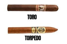 Torpedo: The Torpedo is a unique cigar shape that tapers to a pointed head. Its size varies, but it is commonly around 6 to 6.5 inches long with a ring gauge of about 52–54 (widest point). The tapered head allows smokers to control the draw, making the flavor feel more concentrated and customizable.